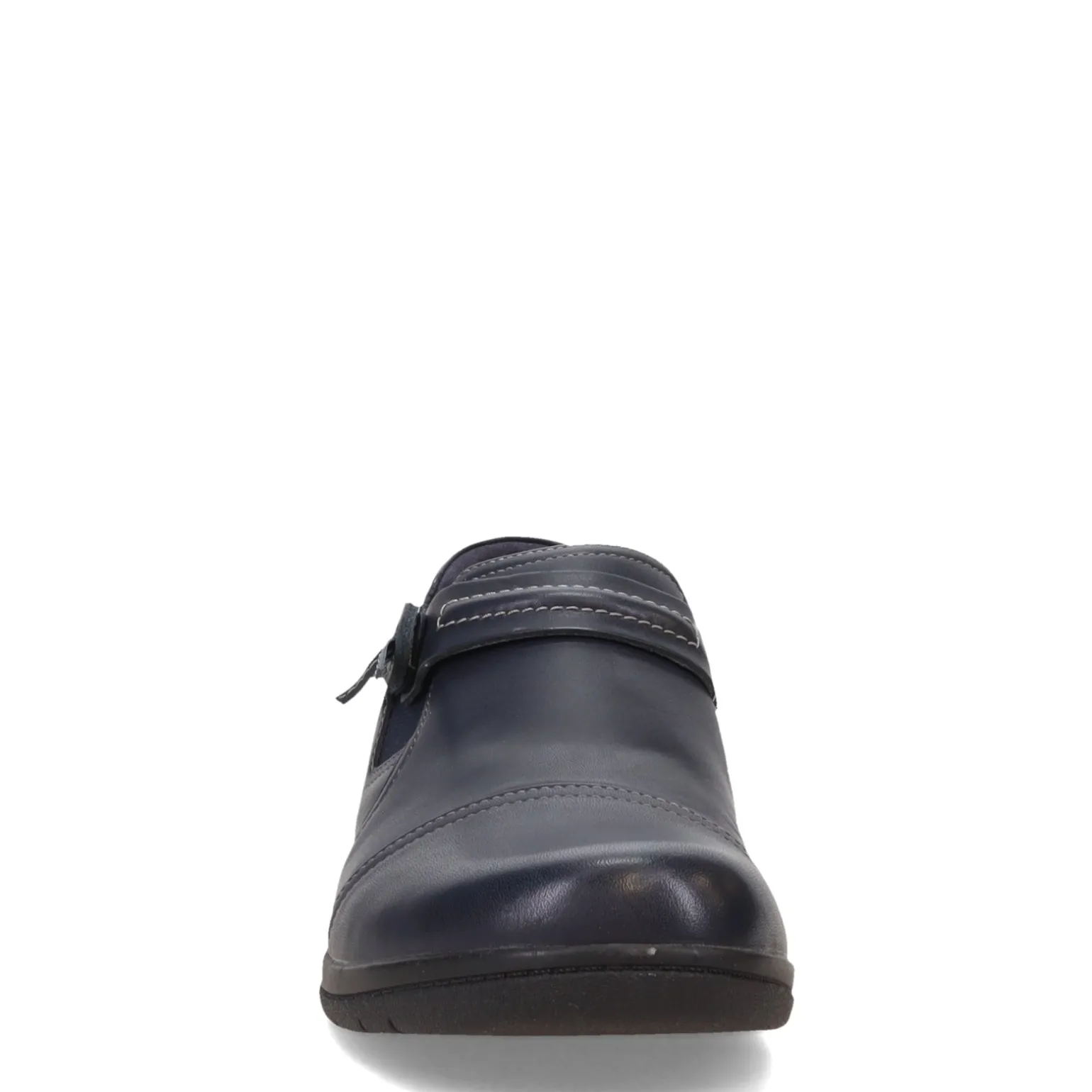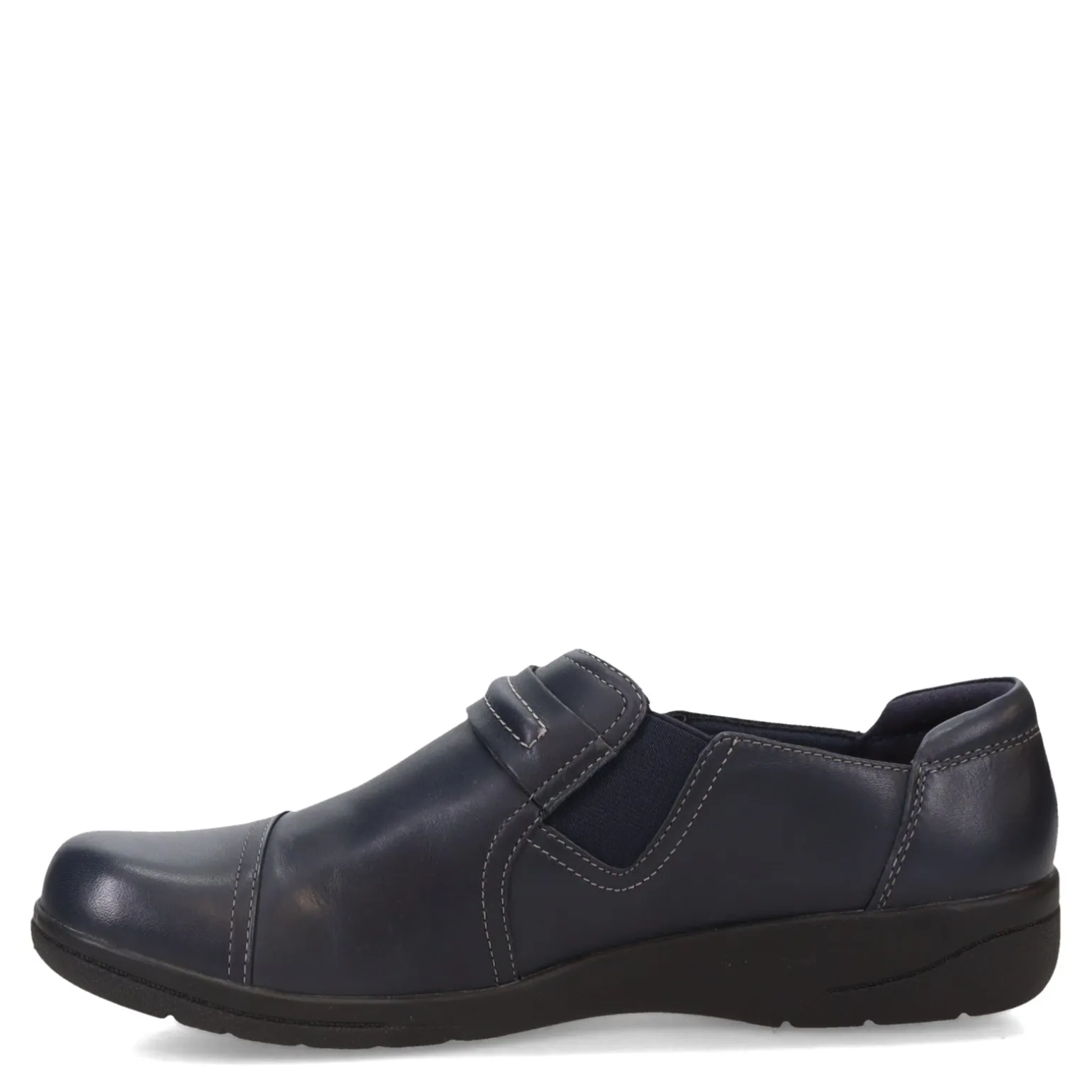 Step into effortless sophistication with Clarks’ Cheyn Madi Slip-On. Crafted with a sleek leather upper adorned with a chic strap and button accent, it offers easy slip-on style and all-day comfort with its Cushion Soft technology footbed
