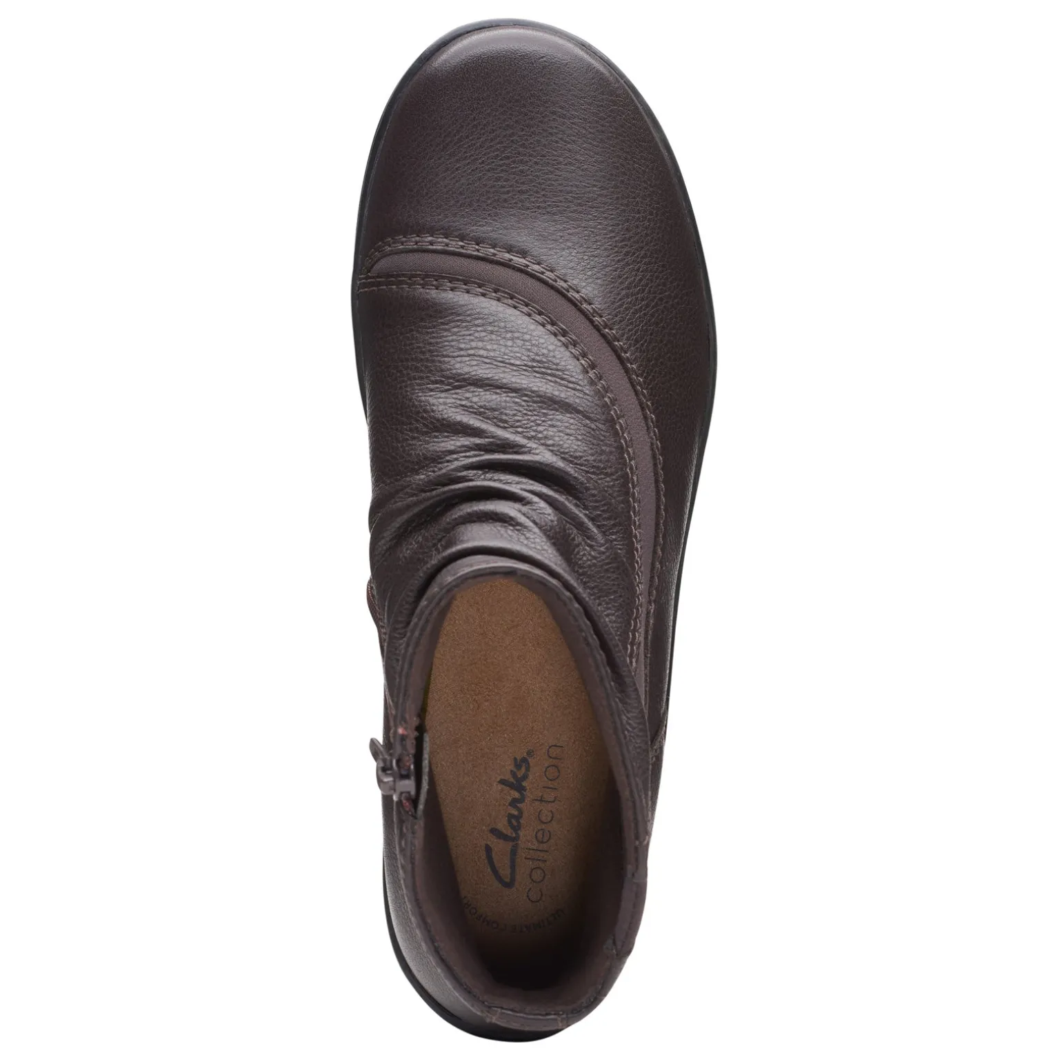 Take a fashionable step this fall in the Cora Derby boot from Clarks. The beautifully crafted leather upper features a rouched detailing and a fabric panel for added interest.