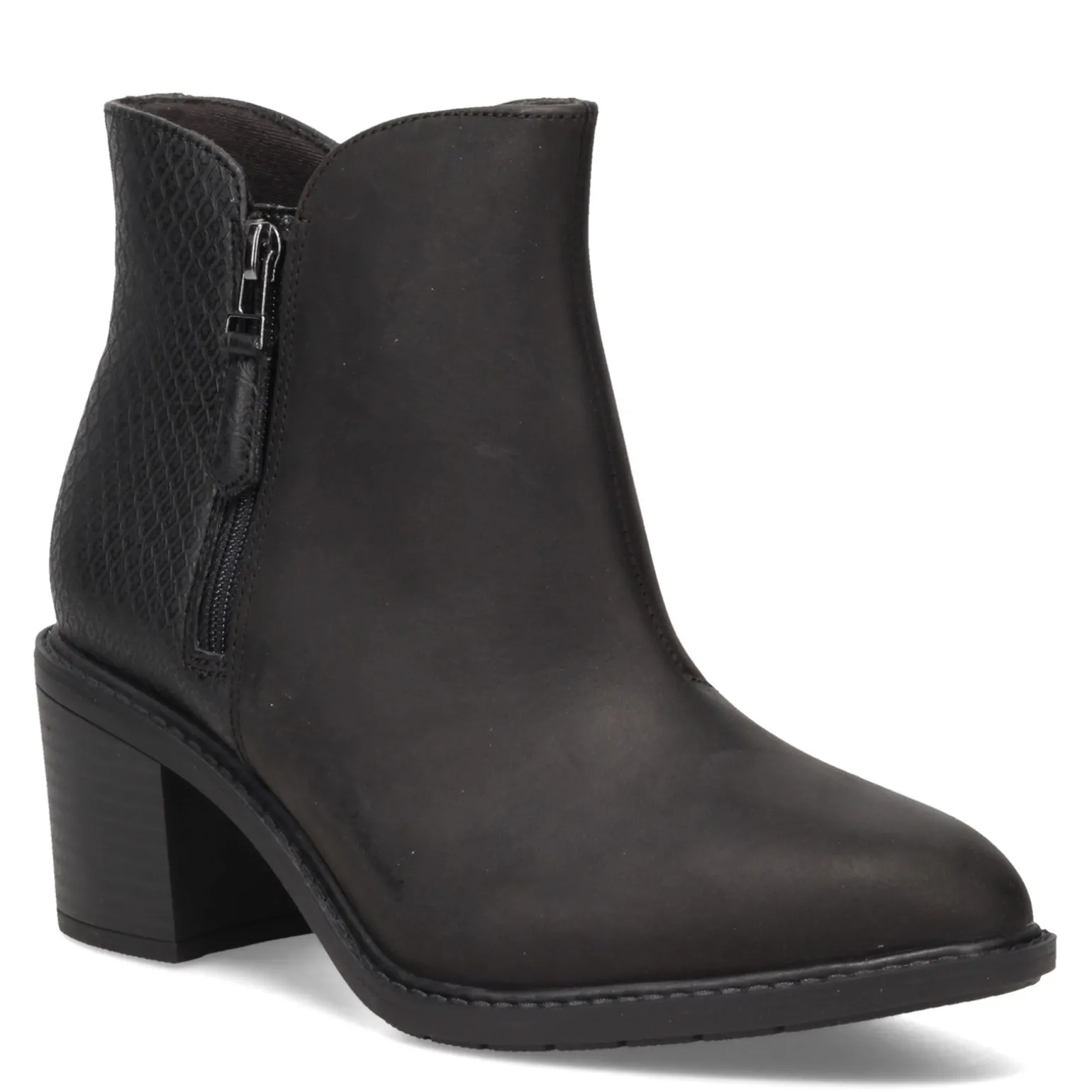 Women’s Clarks, Scene Zip Boot. A modern bootie with casual cool style and a tall, stacked block heel. This women’s boot features a simple side zipper and wrapped toe panel for easy on and off.