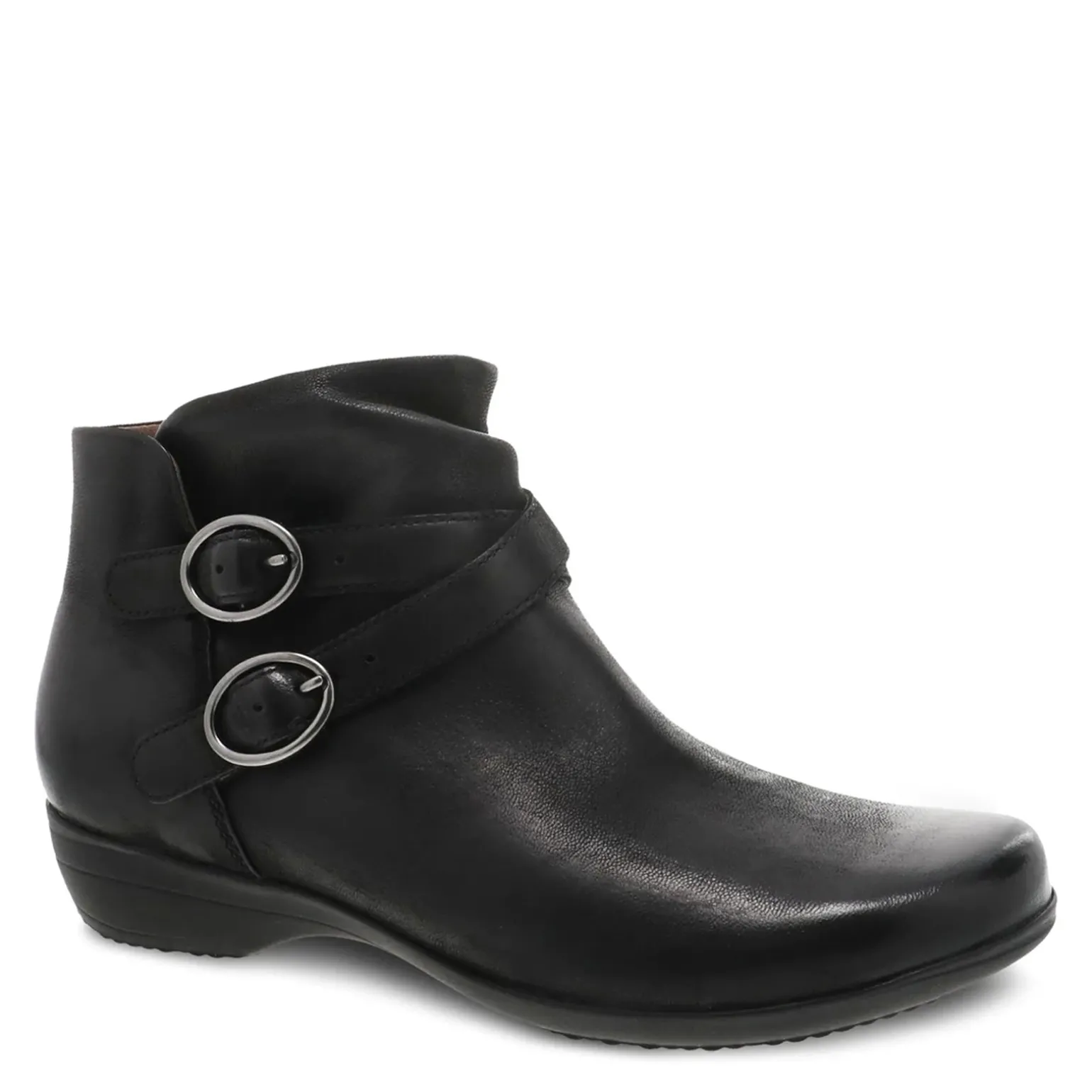 - Chrome-free leather-covered, removable EVA footbed with memory foam and Dansko Natural Arch technology