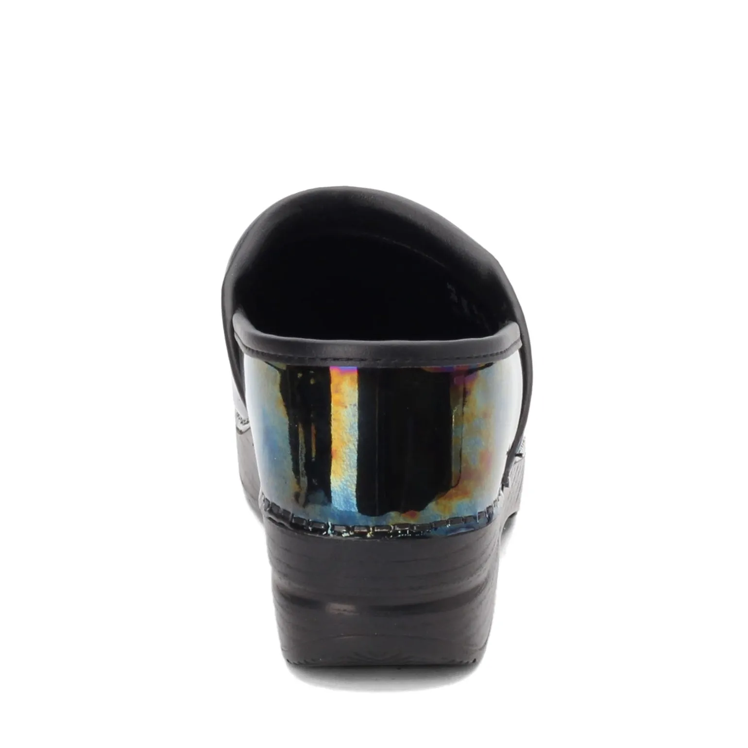 Women’s Dansko, Professional Clog. A closed back comfort clog great for the service or nursing professional. The stunning uppers with a shiny rainbow effect will put a smile on the face of everyone you meet.