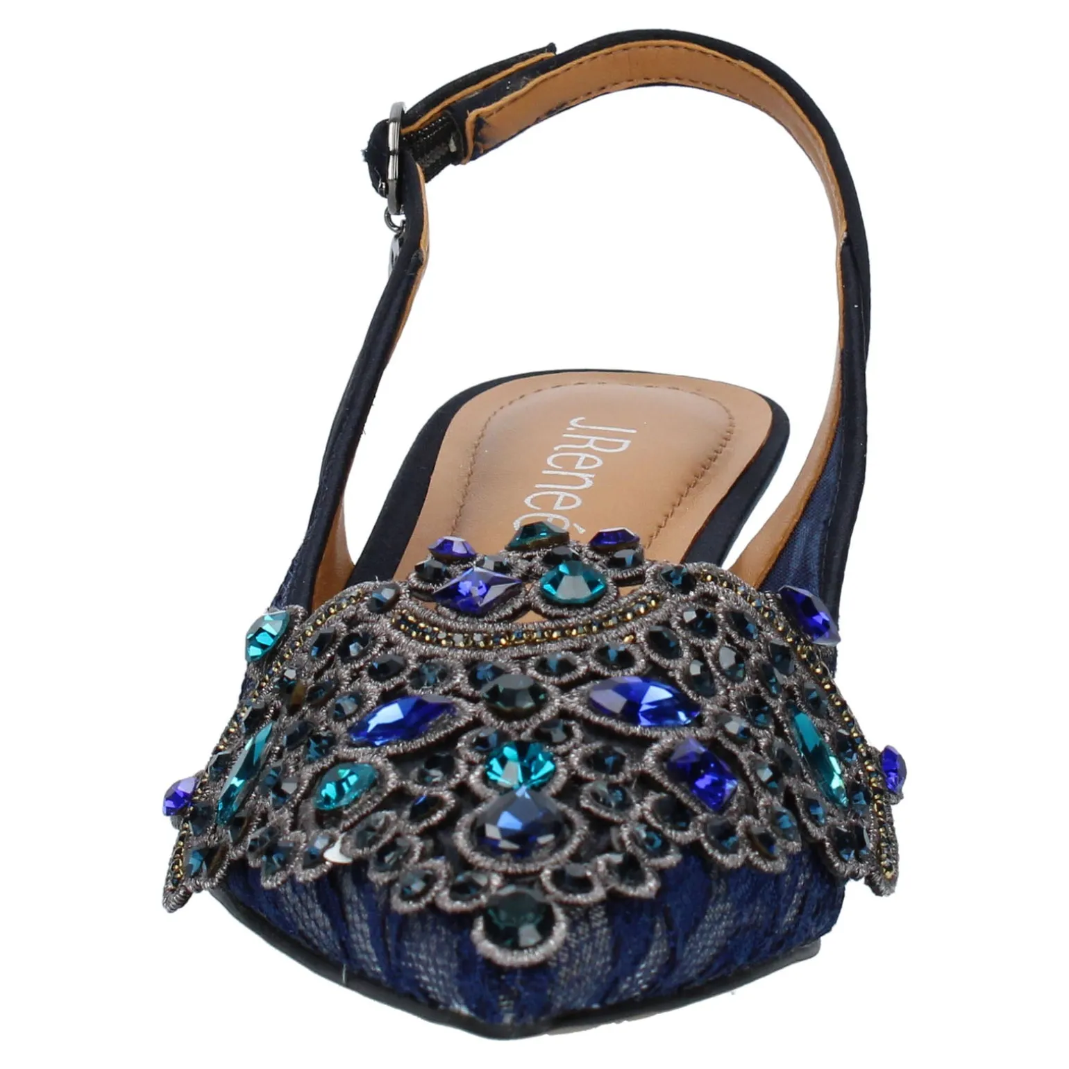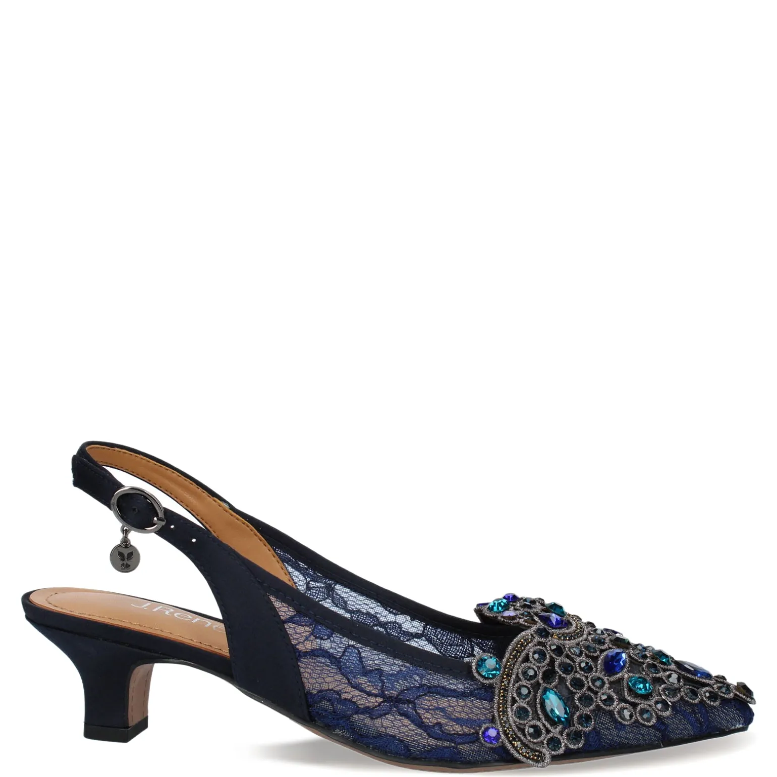 Women’s J Renee, Strovanni Pump. Keep your dressy look dazzling in this low heel fabric and beaded pointed toe pump style. Perfect for weddings, special events or parties, this beautiful style will complete your look.