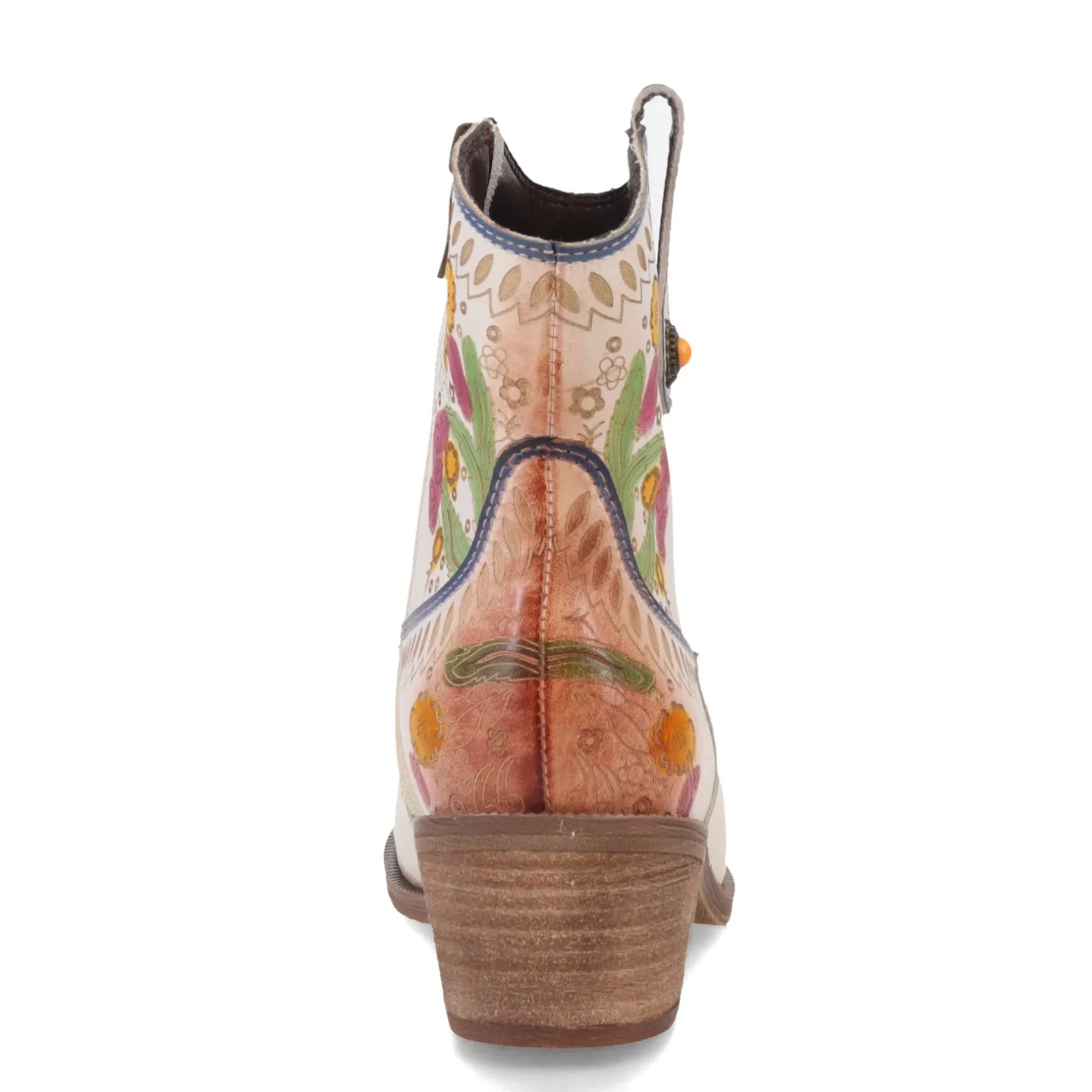 Perfect for the fashion forward cowgirl, L’artiste Galop boots offer comfort and quality with a charming design. Crafted with premium hand selected leathers featuring hand-painted wispy leaves and blooms, this stylish western boot has a front yoke, outside cabochon embellished pull tab, and inside zipper.