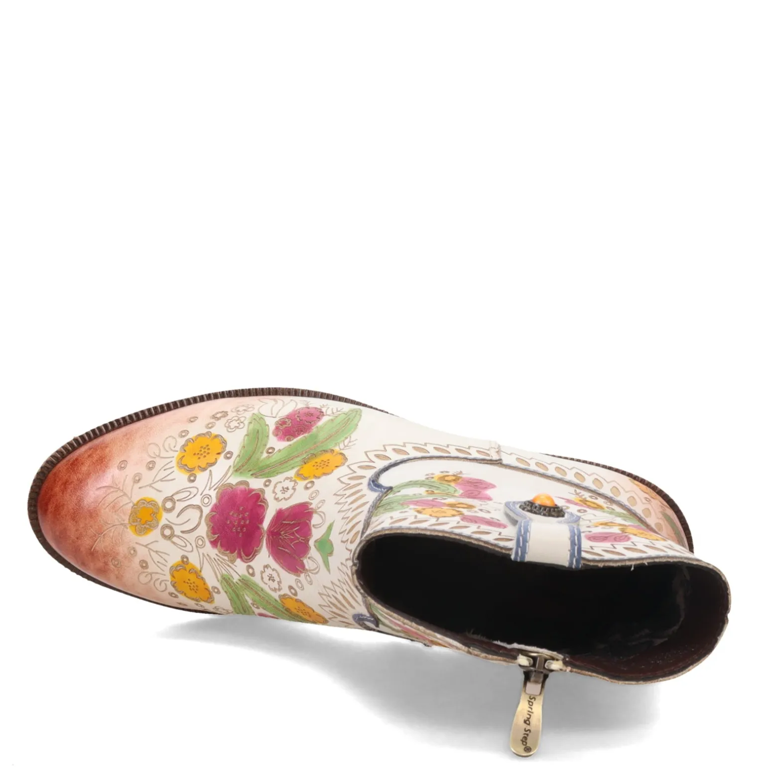 - Hand painted embossed leather uppers
