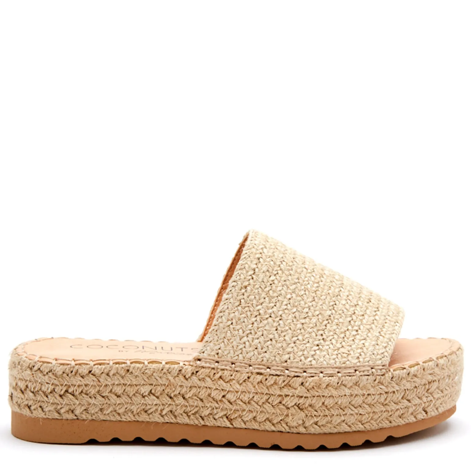 - Woven raffia upper