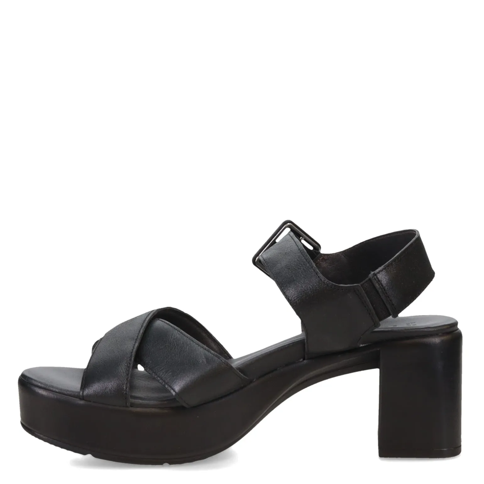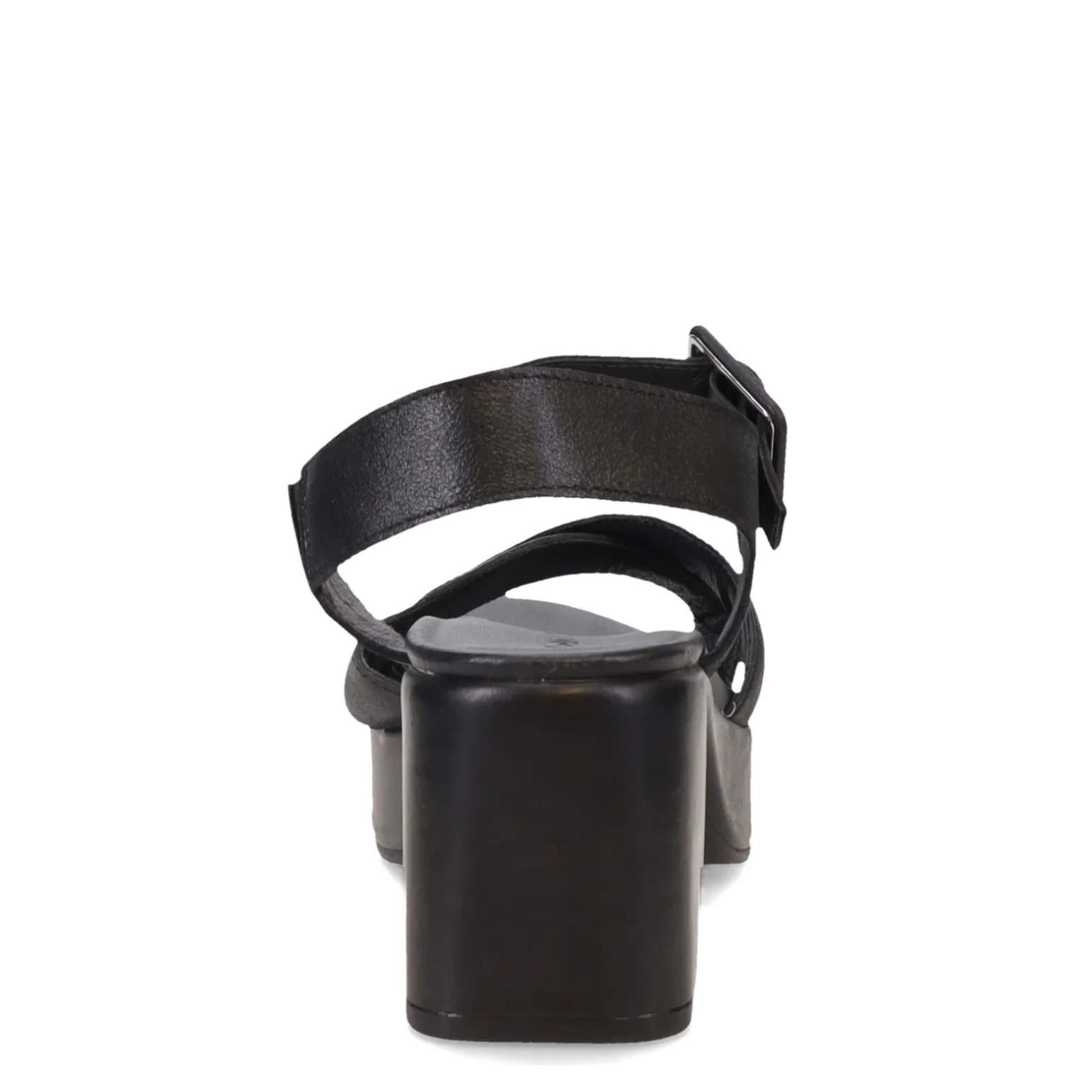 - Leather upper with oversized metal buckle