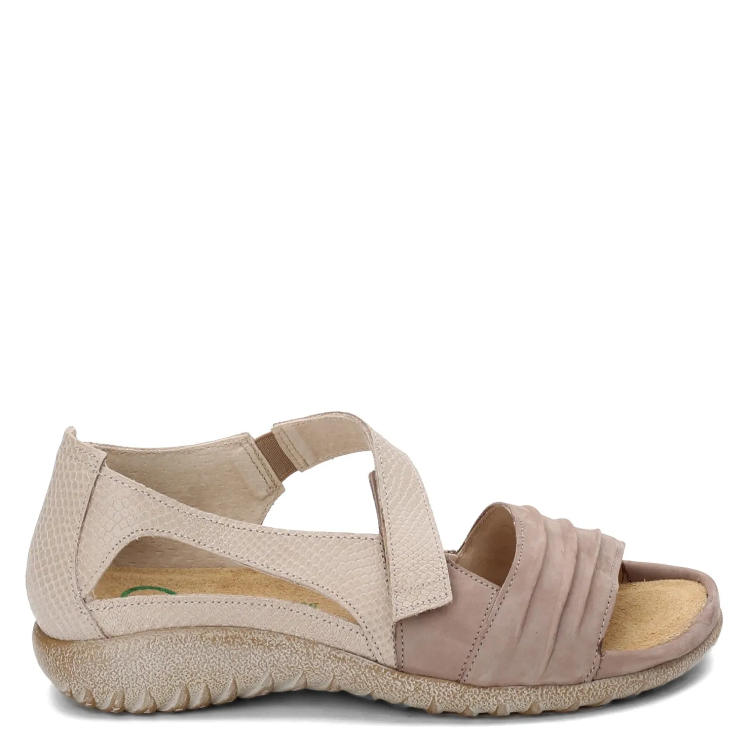 Women’s Naot, Papaki Sandal. Add a touch of style to any outfit with these low heel sandals. This foot flattering design features an asymmetrical strap, pleated accents and a closed back design.