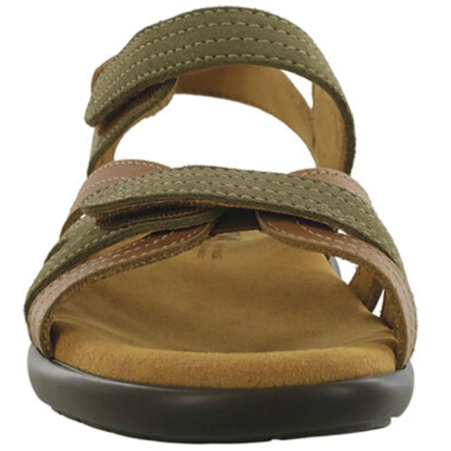 Women’s SAS, Pier Sandal. These women’s sandals are designed with a hook-and-loop closure that adjusts to provide a custom fit. A cushioned insole contours to your foot and provides all-day support, while the polyurethane outsole gives reliable footing.