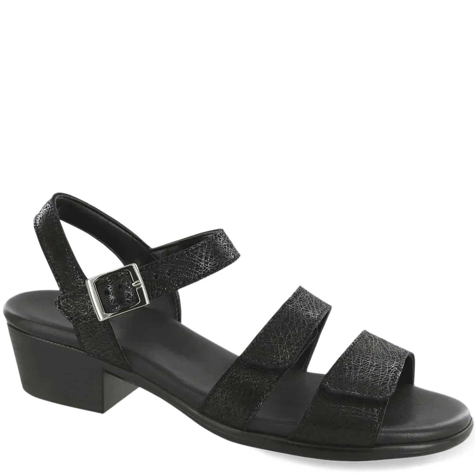 SAS Savanna is the ultimate summer shoe for days when you want to stay cool and comfortable in style. It has a hook and loop design along with a buckle detail that provides adjustability throughout the day. The anatomical padded insole offers cushioning with soft to the touch materials and a design made to contour to the shape of your foot Leather upper Adjustable hook and loop strap with buckle accent Leather lining Contoured footbed with a soft Super Suede cover is molded to the natural arches and curves of your foot 1 3/4-inch heel Manmade outsole with wide sole base provides increased stability and maximum shock absorbency