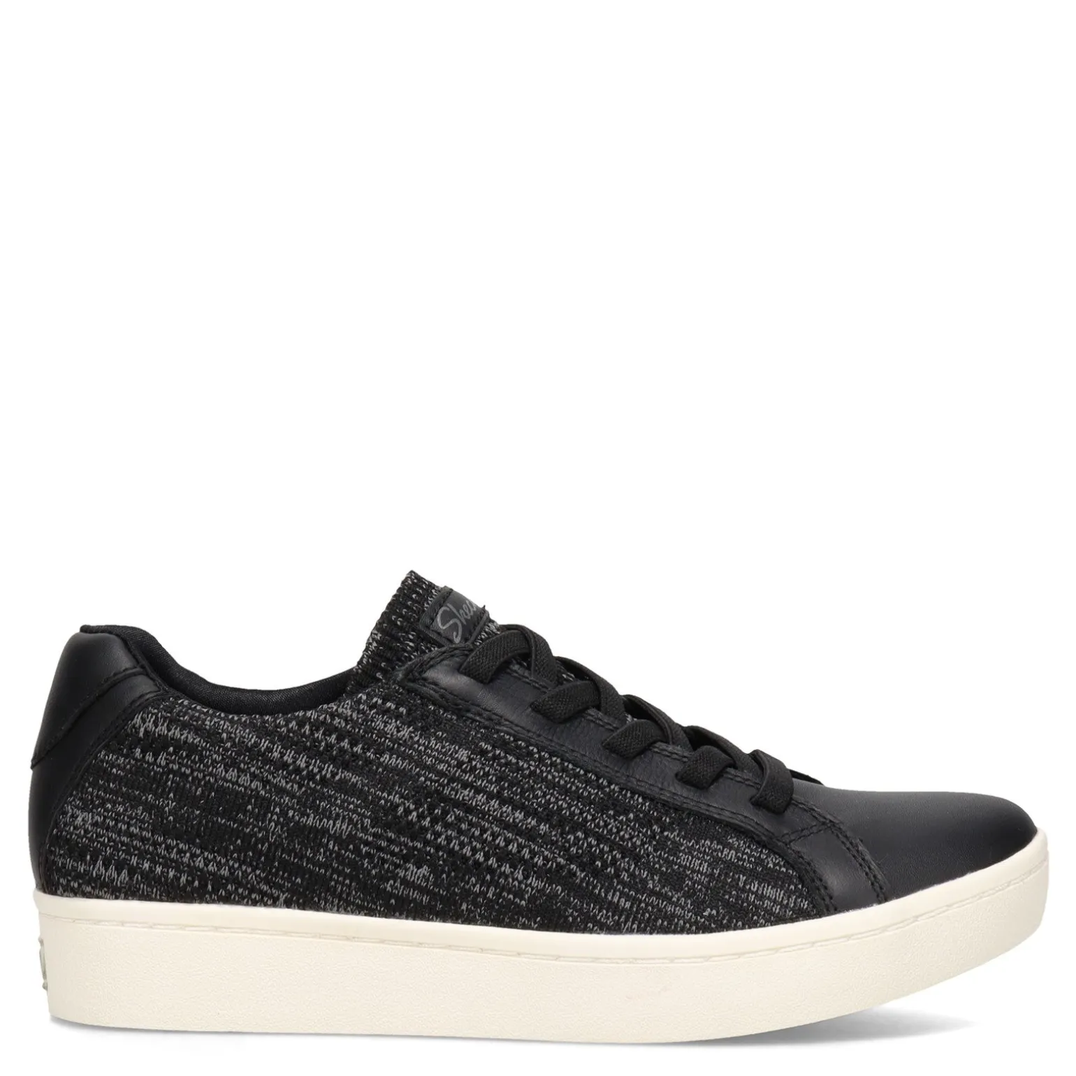 - Knit fabric and smooth leather upper
