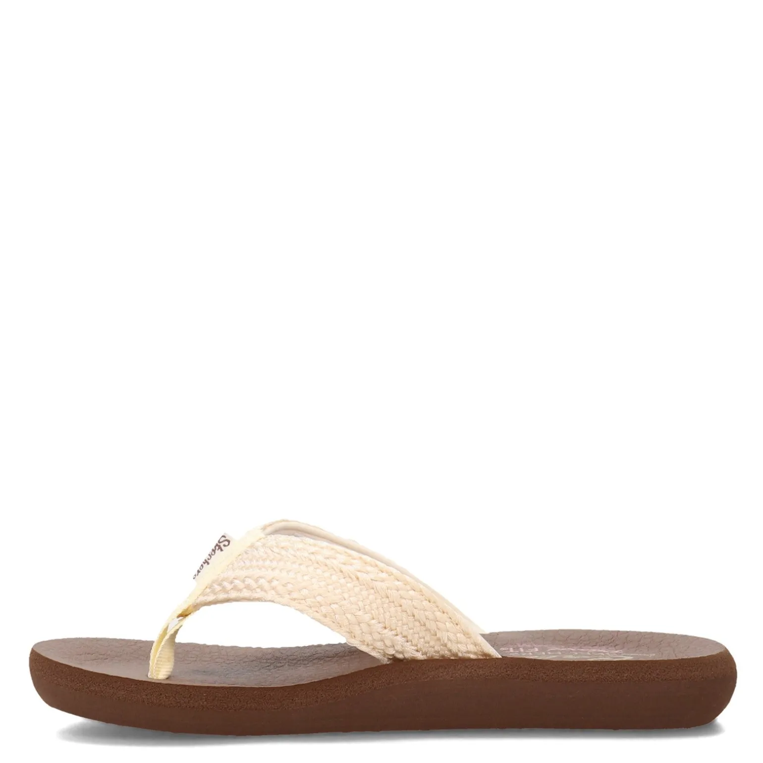 Women’s Skechers, Asana Sandal. The Asana sandal is sure to be at home in your casual wardrobe this summer. Soft woven crocheted finish fabric upper in a casual thong sandal design with stitching accents, colorful underlay detail on straps, and a comfortable yoga foam footbed. The Asana sandals are both cute and comfortable, and the perfect go-to shoes for warm weather..