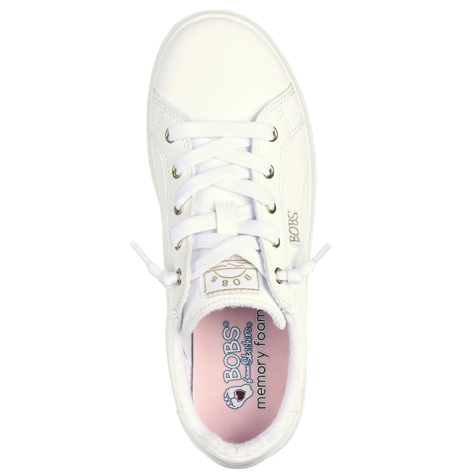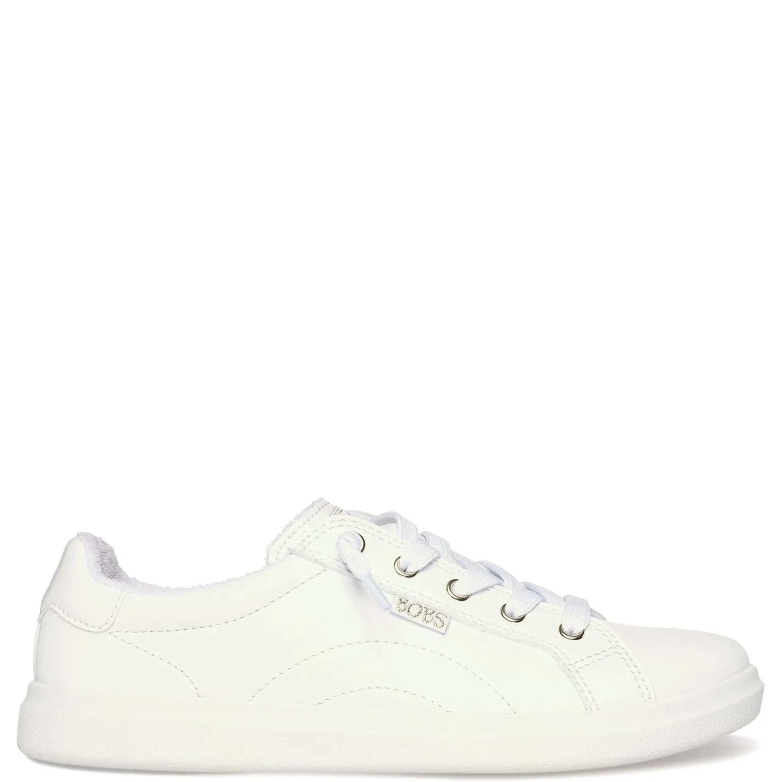 Relax in style with this BOBS from Skechers Memory Foam slip-on sneaker. Featuring a comfortable vegan leather upper, deco laces and a cushioned memory foam footbed to support your steps all daySmooth synthetic leather upper Slip-on style with laced front panel Memory Foam cushioned comfort insole Flexible traction outsole Made with 100% vegan materials