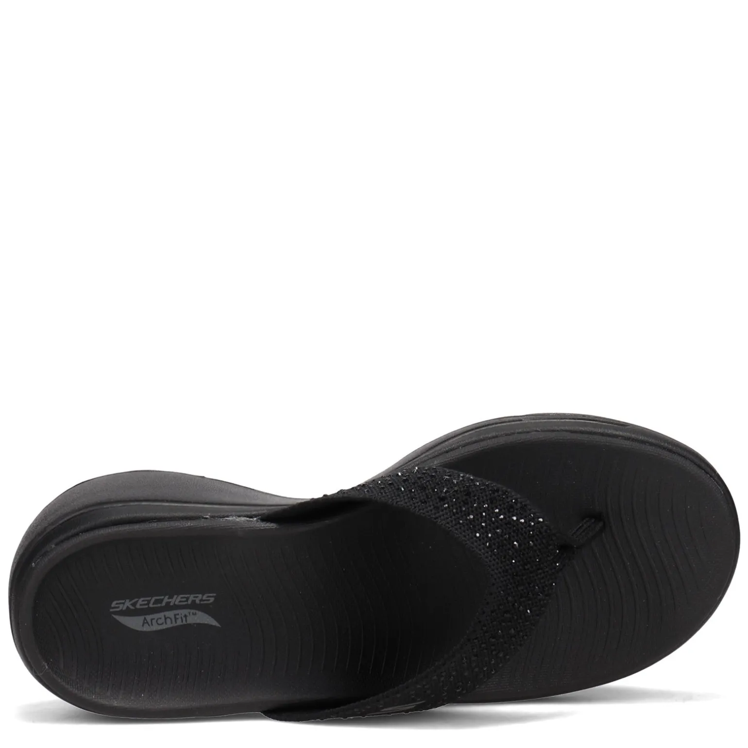 Women’s Skechers, GOwalk Arch Fit – Dazzle Sandal. A sparkly thong sandal style, with a stretch fit fabric upper, that will keep your feet cool and comfortable all day! You’ll enjoy the cushioned comfort of the highly responsive ULTRA GO midsole and the patented Skechers Arch Fit insole system with podiatrist-certified arch support.