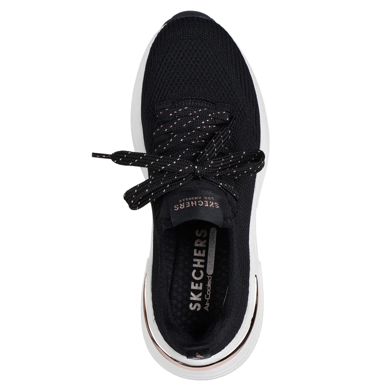 Blend style and comfort seamlessly with the Skechers Hazel – Pretty Knitty sneaker, showcasing a laced pull-on engineered knit upper with chic metallic trim details. The cushioned Skechers Air-Cooled Memory Foam insole ensures a cool and comfortable stride all day long.