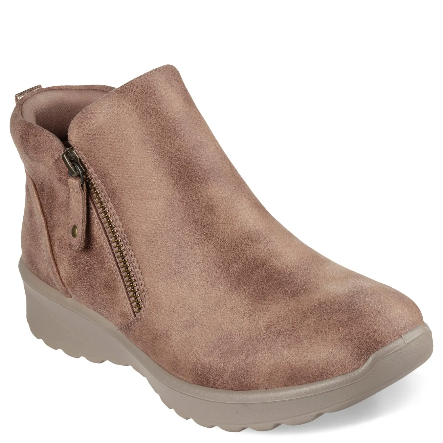 Slide into cozy style with the Skechers Lovely Vibe Zip Boots. Crafted from vegan microleather with a convenient zipper closure, these boots feature a plush Air-Cooled Memory Foam insole that ensures cushioned comfort for every stride.