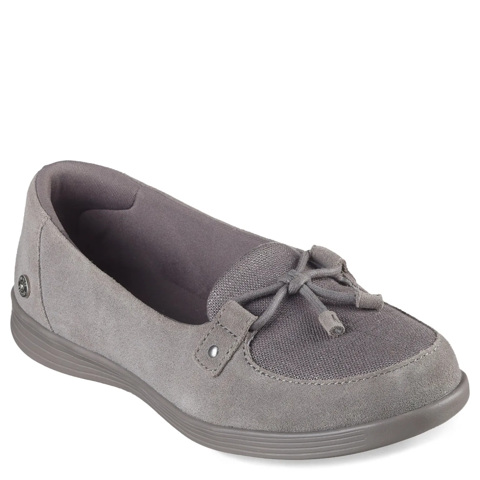 - Suede and canvas upper with tassel accent