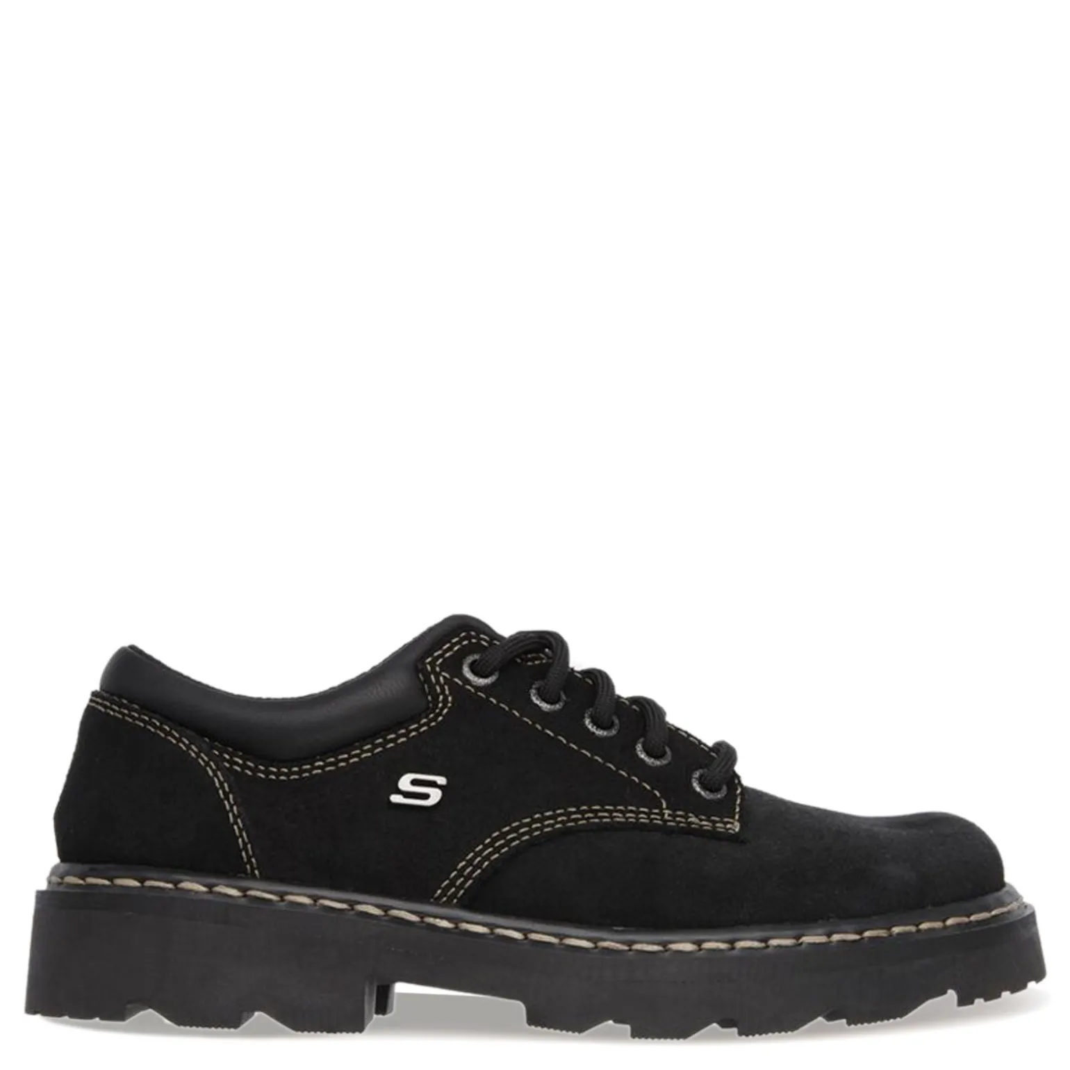 Women’s Skechers, Parties Mate Oxford. The SKECHERS Parties-Mate oxford is a great look for the casual lifestyle. Scuff resistant leather in a lace up casual oxford with plain toe. Stitching and overlay accents add detail to this comfortable lace up shoe. The 1/2 inch thick lug traction sole provides extra stability while the 1 inch heel makes this a great everyday wear option.