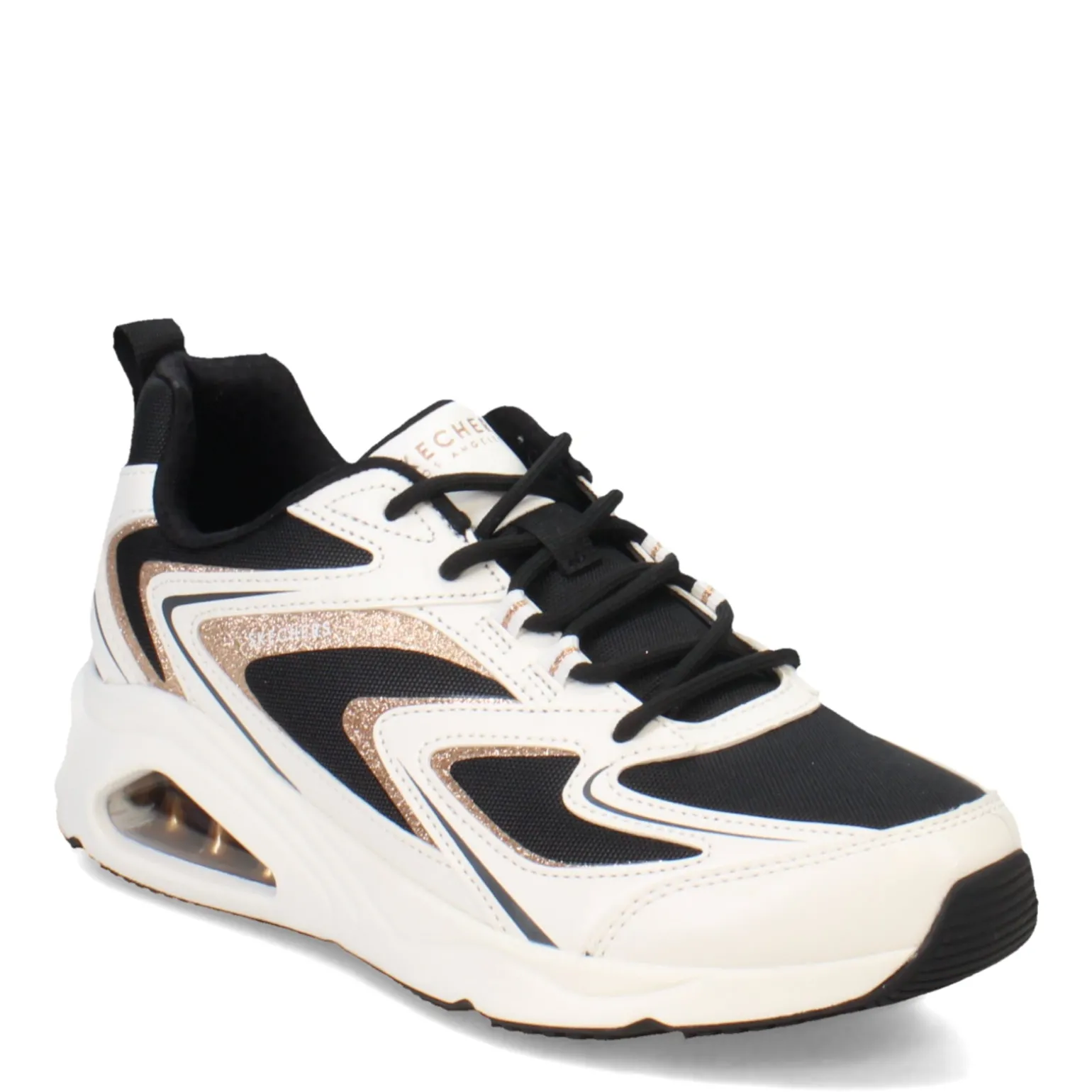 Add a touch of glamour to your style with the Skechers Street Tres-Air Uno – Shimm-Airy sneaker, blending sporty fashion with shimmering details for a standout look. Boasting a mesh upper with glittery hotmelt accents, a visible Skech-Air airbag midsole, and a cushioned Skechers Air-Cooled Memory Foam insole, these sneakers offer both style and comfort for your everyday adventures.