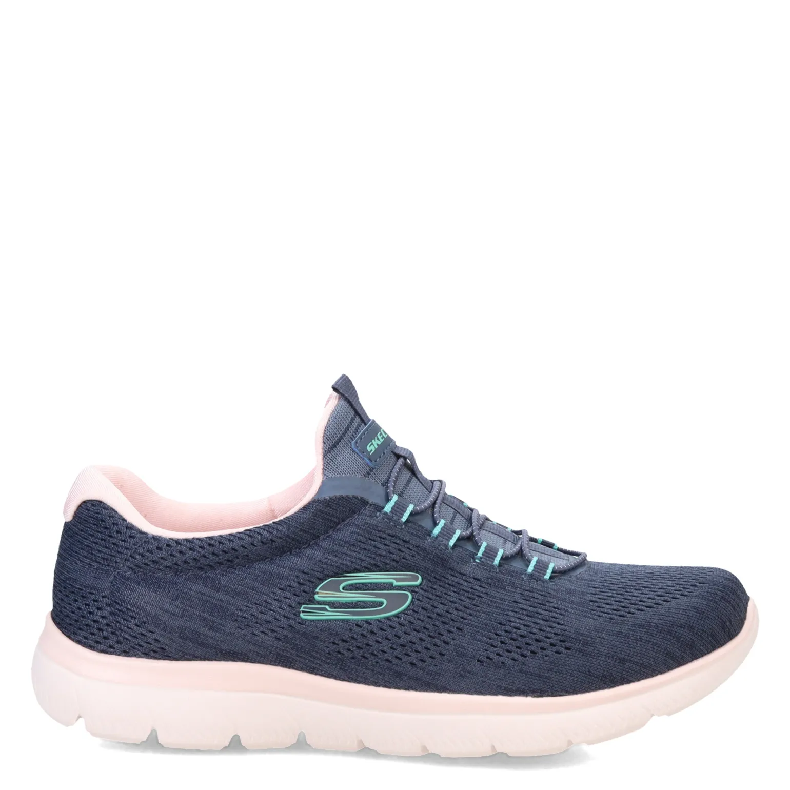 What do you get when you combine comfort and sporty style? The Skechers Summits – Fun Flair is the answer. This athletic style features a heathered engineered mesh upper with stretch laces and a cushioned memory foam insole to keep your feet happy all day long