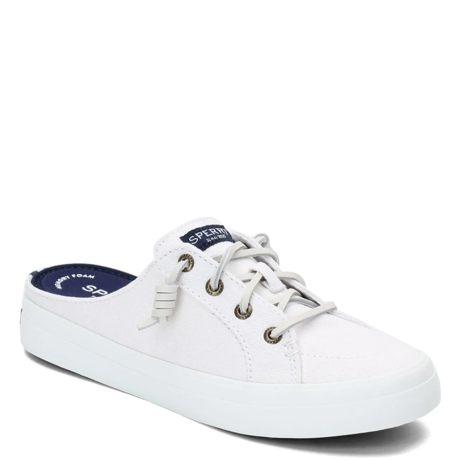 Women’s Sperry, Crest Vibe Mule Sneaker. Slip into these cute mule style shoes for a fun day out and about. With classic nautical styling and a laced look, you’ll be looking fashionable while feeling comfortable in these slip-ons.
