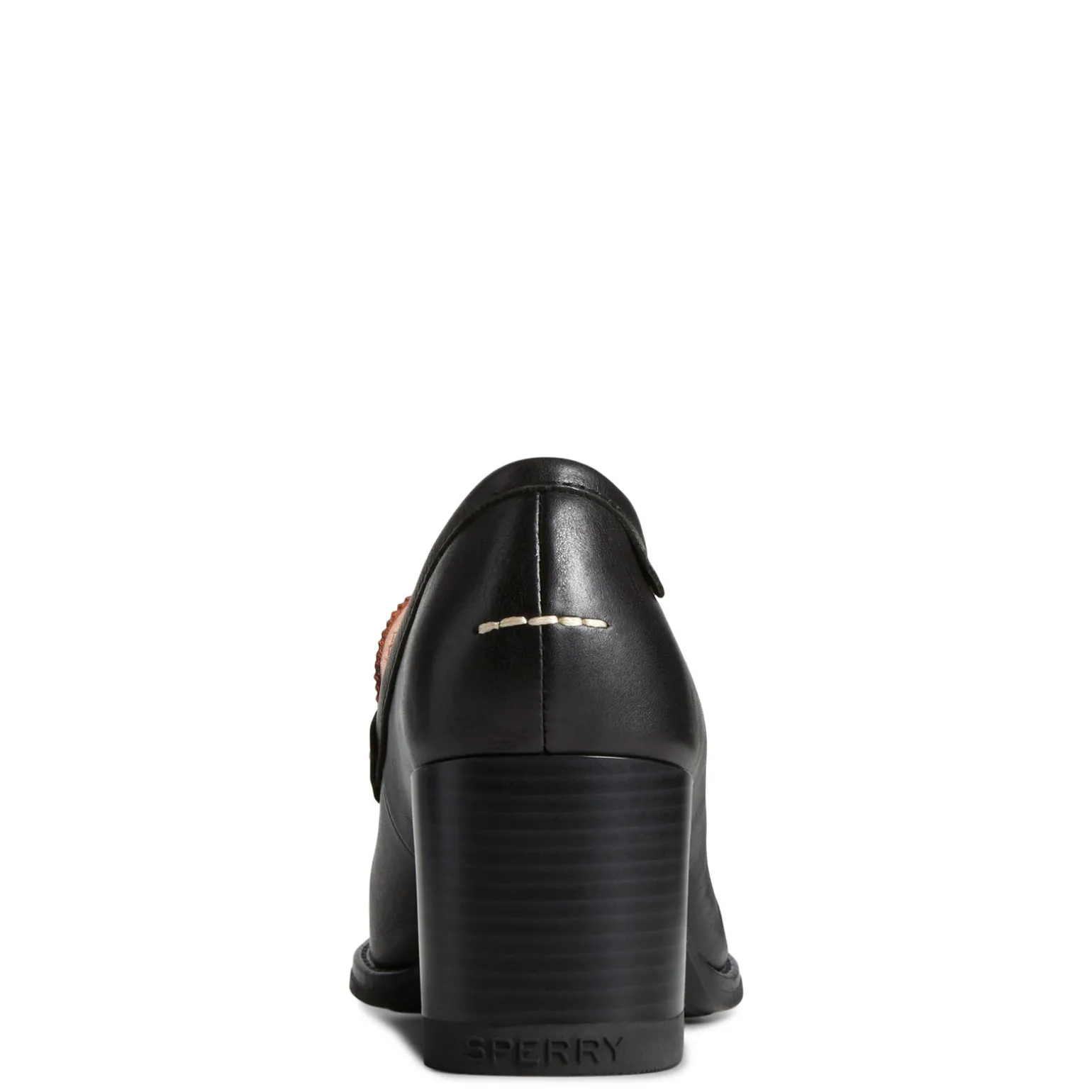 A classic style gets a modern update in this two-tone penny loafer. With preppy loafer styling and a 2 ½-inch heel, this shoe has an undeniable edge. Pair it with jeans or a pencil skirt for a trendy look Premium leather upper with acrylic color pop Slip-on styling for easy on and off Memory foam footbed Flexible rubber outsole 2 ½ inch block heel