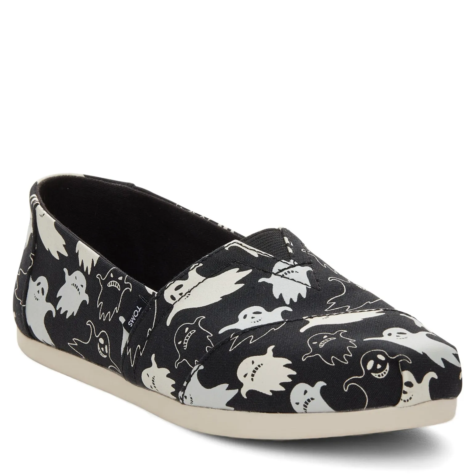 Oh-so-spooky Alpargata slip-ons. Perfect for Halloween, these espadrilles feature a classic TOMS silhouette and a fun ghost print that glows in the dark. Fitted with elastic gore and cushy CloudBound insoles for easy entry and long-lasting comfort.