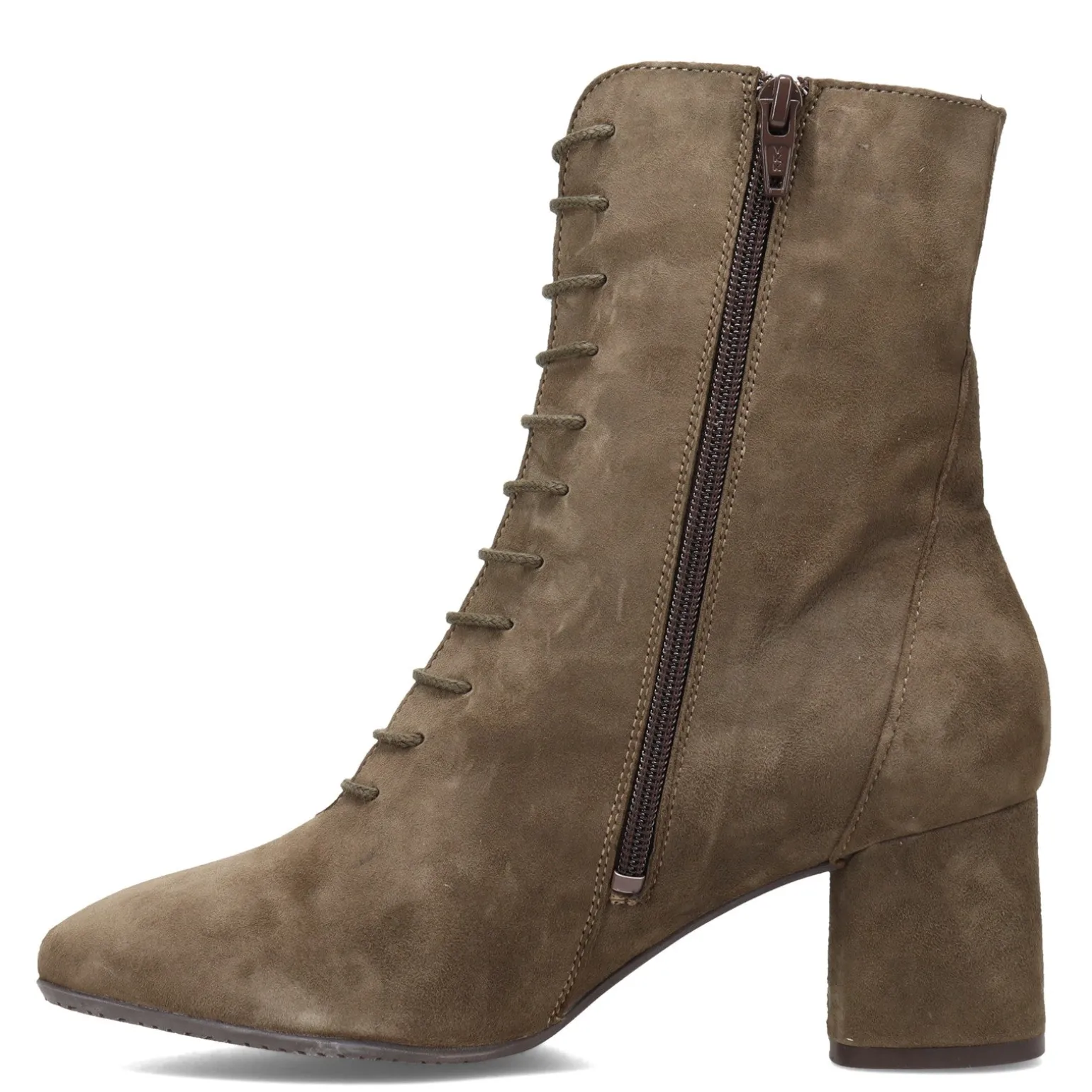 - Side zip closure with laced front panel