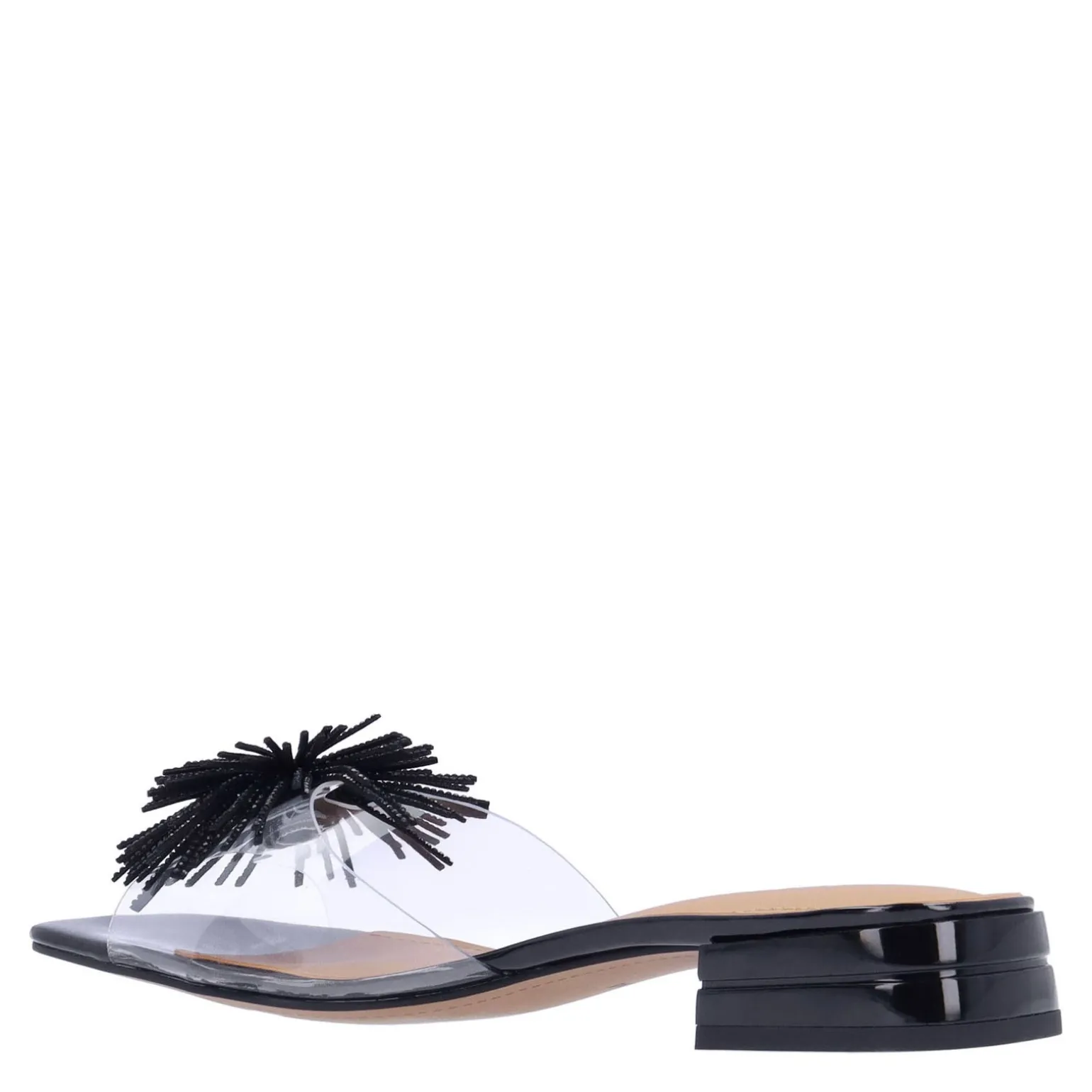 Step into sophistication with the J Renee Cherita slides, designed with clear vinyl straps for a modern twist on classic elegance. Featuring a comfortable memory foam and latex insole, these dressy slides boast a modest 1.25-inch heel, making them the perfect choice for both style and comfort.