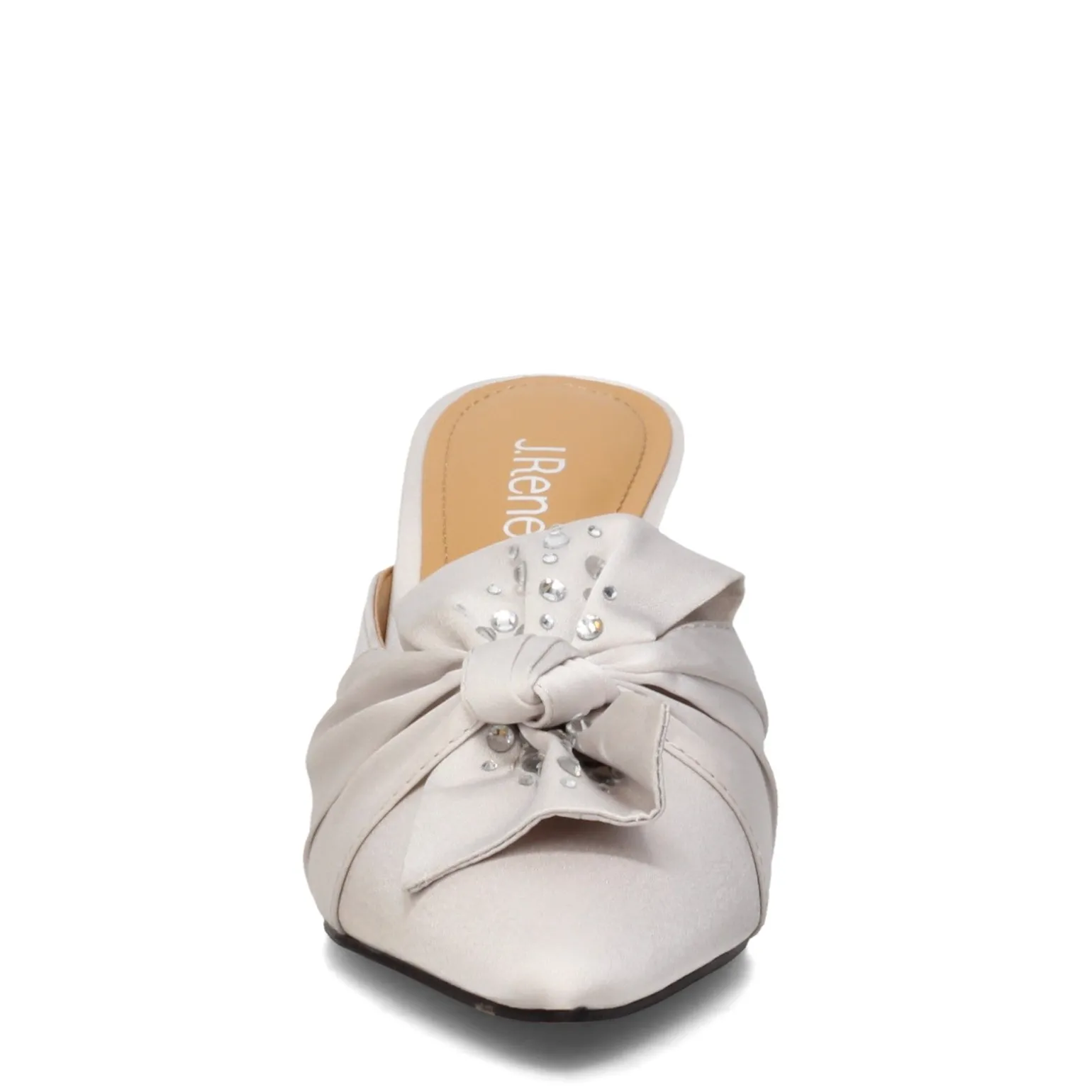 Women’s J Renee, Mianna Slide. These sleek dressy mules are perfect for that special occasion. The Mianna features a closed, pointed toe, a sleek stiletto heel and a luxurious satin fabric upper to compliment your dressy outfit.