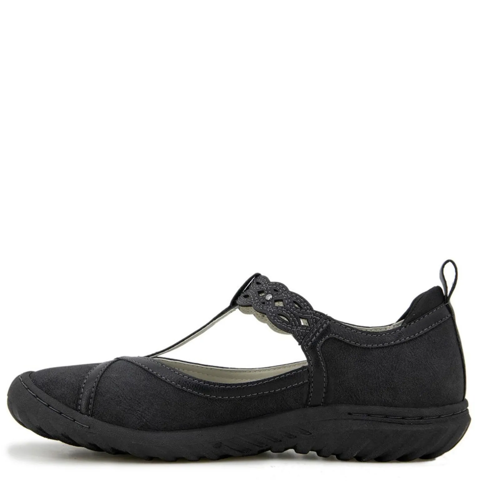 - Vegan synthetic upper with an open t-strap upper design