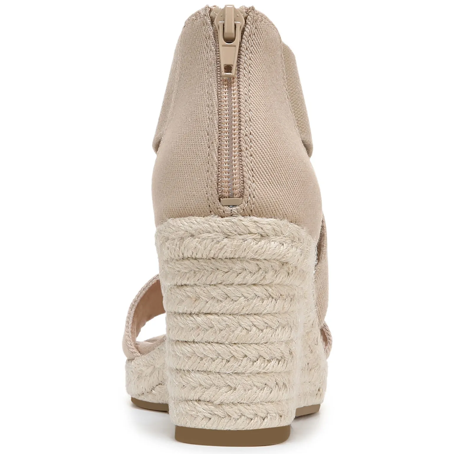 - 3 1/4-inch wedge heel with a 1 inch platform trimmed in braided rope