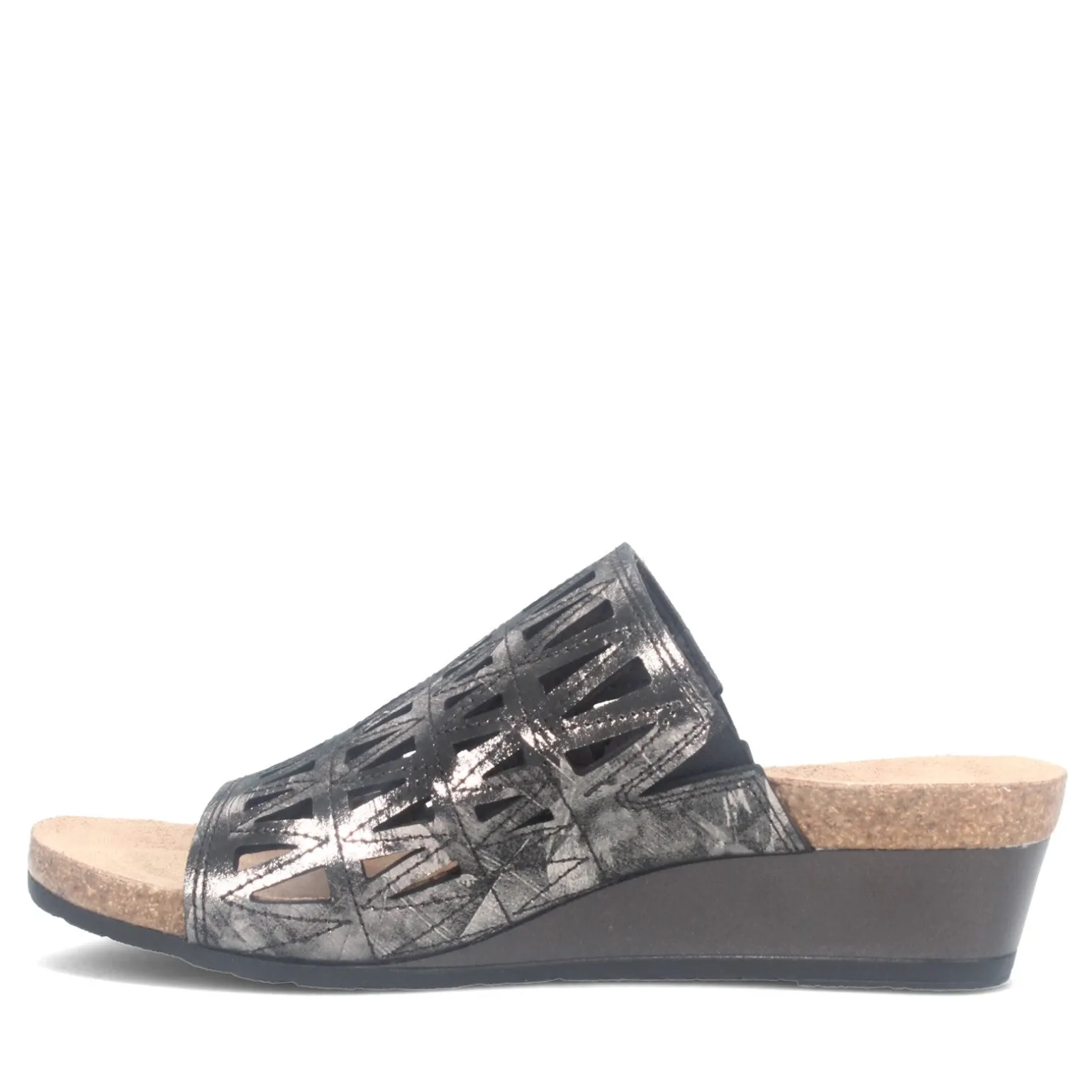 - Suede wrapped, anatomic cork and latex footbed molds to the shape of the foot