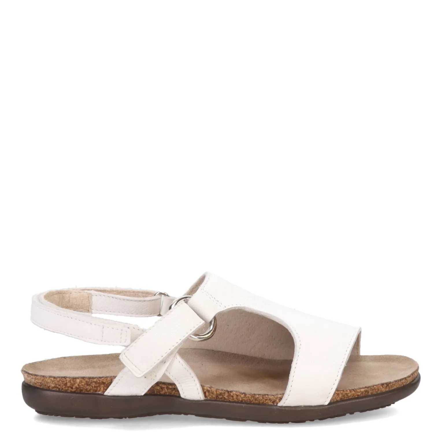 - Suede covered cork and latex footbed molds to the shape of the foot with wear