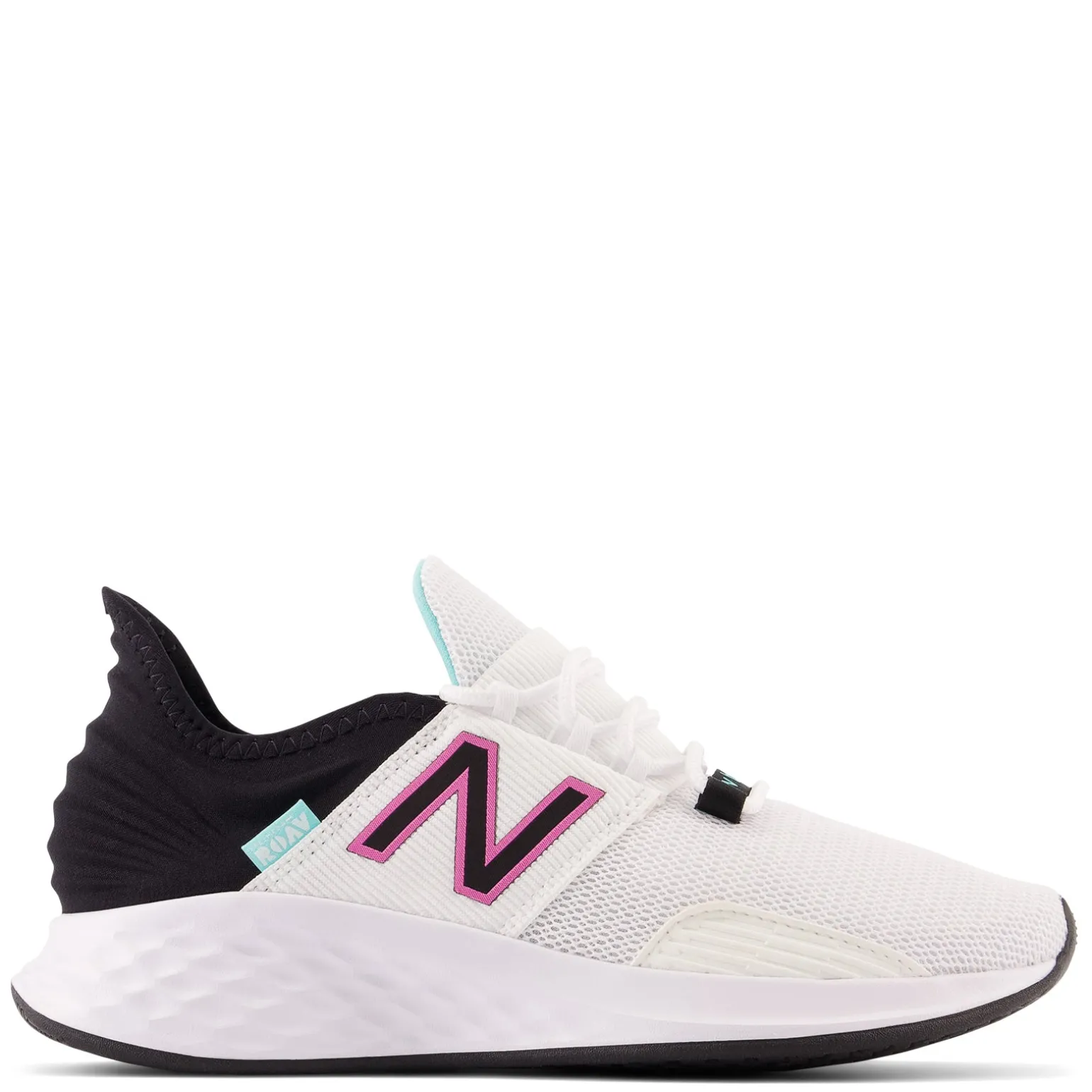 Women’s New Balance, Fresh Foam Roav Running Shoe. A comfortable sneaker that delivers an unbeatable cushioned ride. The upper is made of a stretch fit mesh and gives a bootie-like fit for the ultimate in comfort.