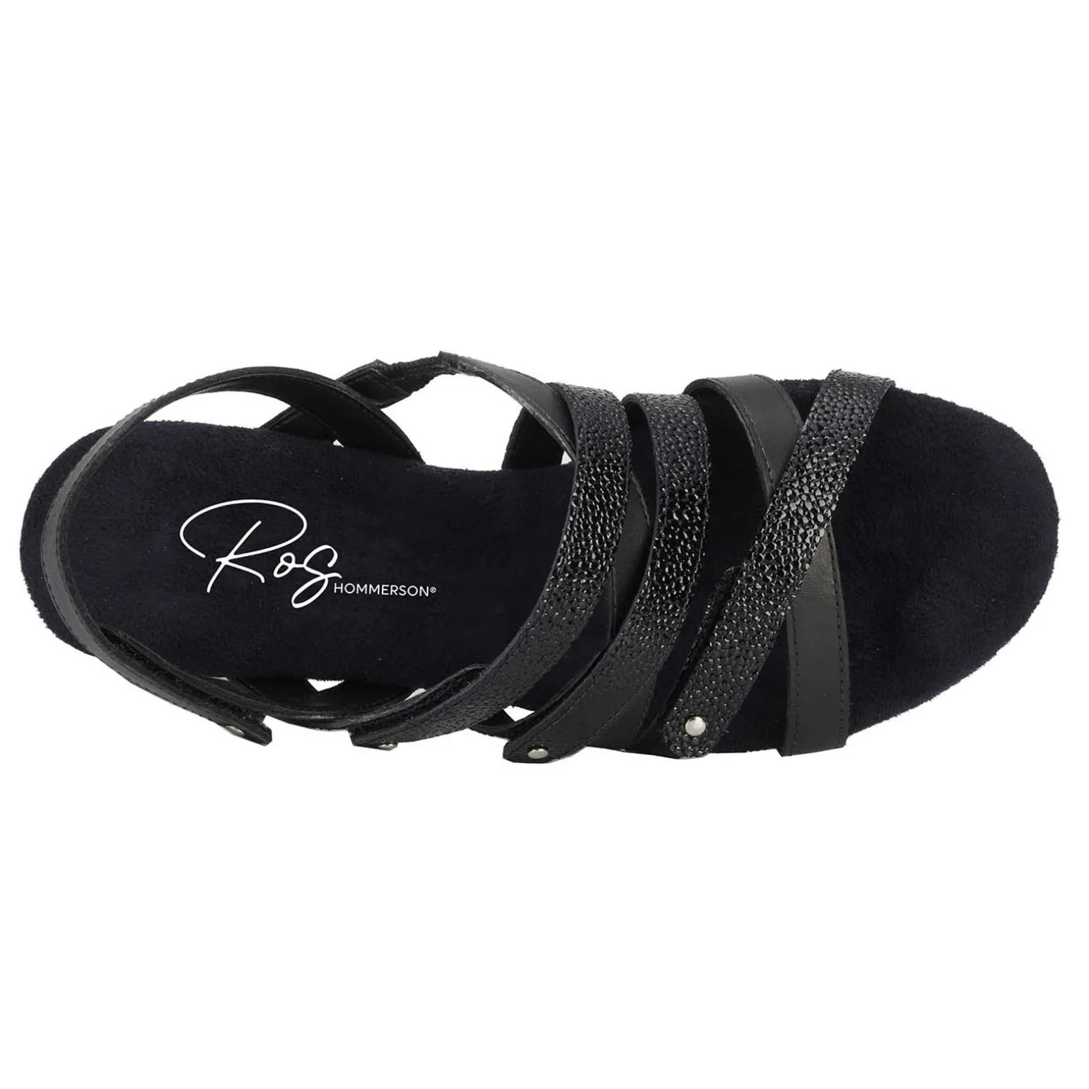 Experience comfort, versatility, and style with the Ros Hommerson Breeze Sandal featuring four adjustable hook and loop closure straps for a customized fit. With metallic nail heads, metallic trim heel detail for a touch of flair, and signature Tiny Pillows insoles providing cushioned support with moderate arch support, these sandals are perfect for stepping into summer with confidence.