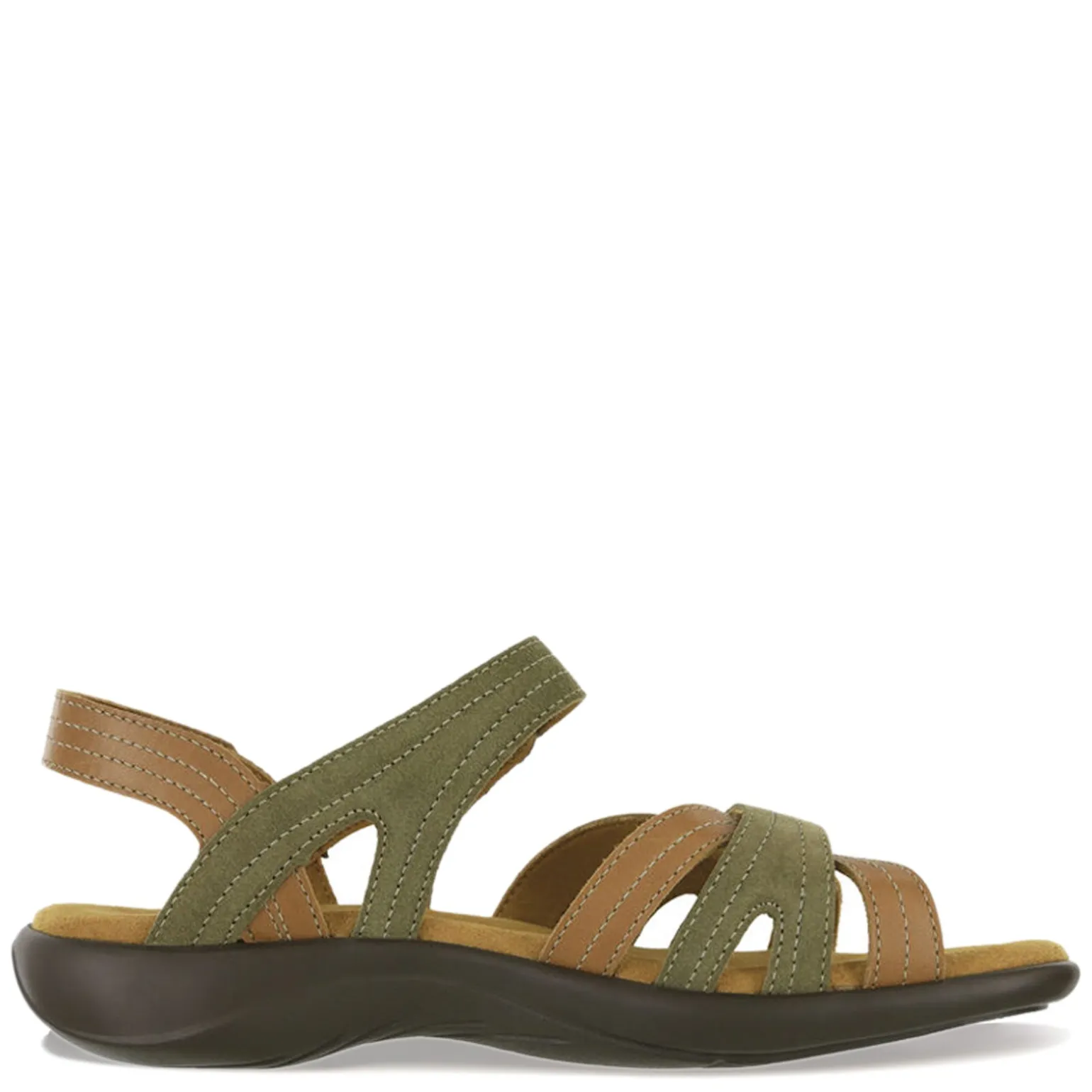 Women’s SAS, Pier Sandal. These women’s sandals are designed with a hook-and-loop closure that adjusts to provide a custom fit. A cushioned insole contours to your foot and provides all-day support, while the polyurethane outsole gives reliable footing.