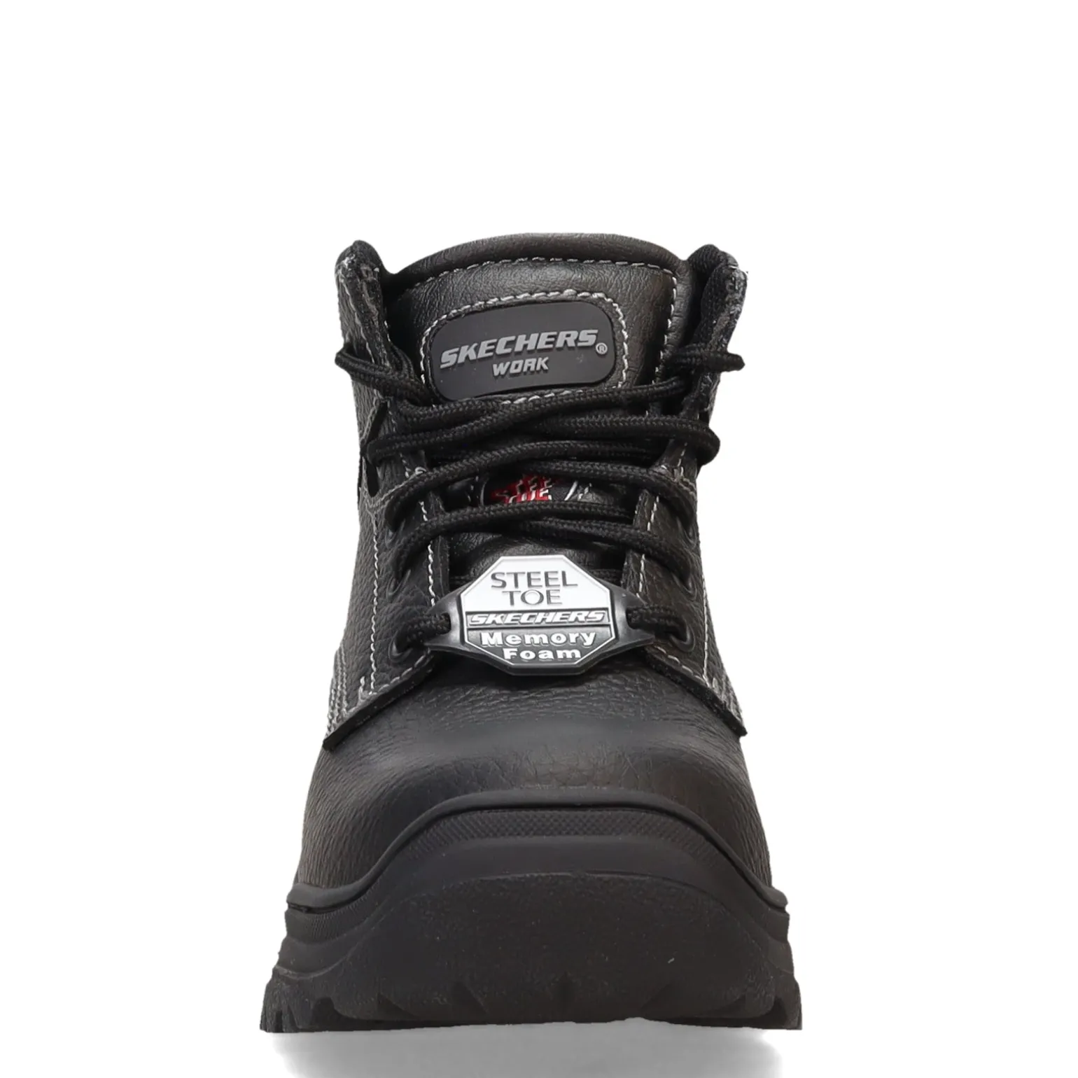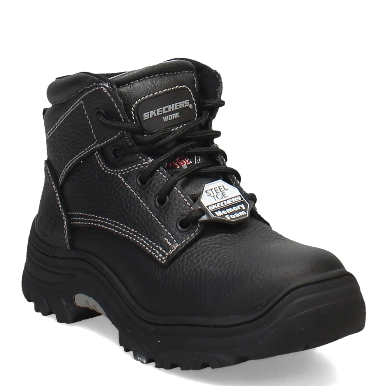 Built to meet the demands of the toughest job sites, the Skechers Burgin Krabok Steel Toe Work Boots combine rugged protection with comfort. These steel-toe boots feature a durable leather upper, high-traction slip-resistant rubber outsole, and an Air Cooled Memory Foam insole for supportive cushioning all day long