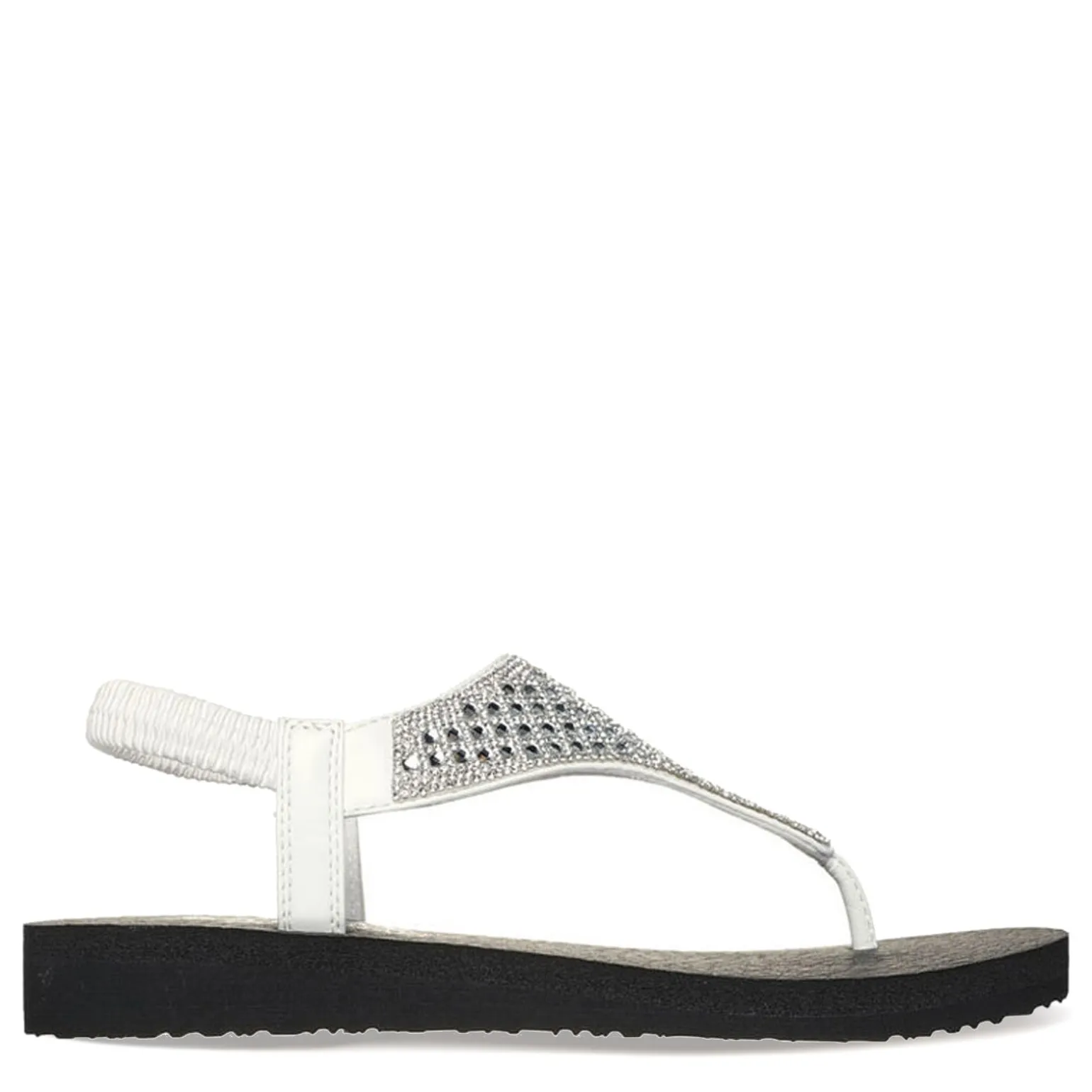 - Vegan rhinestone embellished synthetic upper in a comfortable thong sandal design