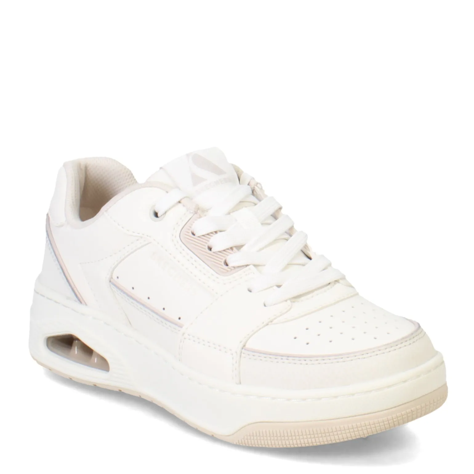 Experience a timeless classic with a contemporary twist in the Skechers Street Uno – Courted Style sneaker, featuring an embossed leather upper with contrast piped trim for a fresh look. Complete with a Skechers Air-Cooled Memory Foam insole and visible Skech-Air airbag midsole, these sneakers combine comfort and style seamlessly for everyday wear.