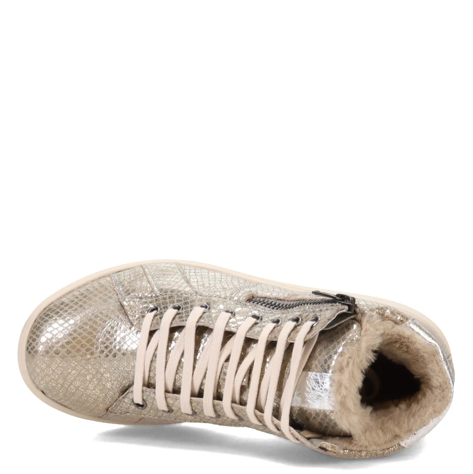 - Leather uppers with faux fur trimmed design